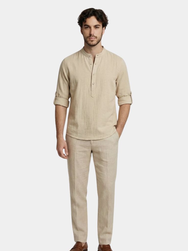 Camiseta casual de manga larga con cuello Henry - <tc>Cross & Crown</tc>