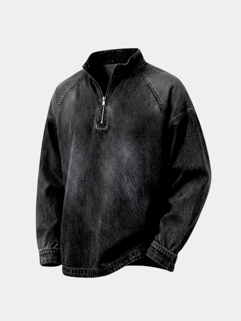 Stonewash Denim Quarter Zip Jacket - Cross & Crown