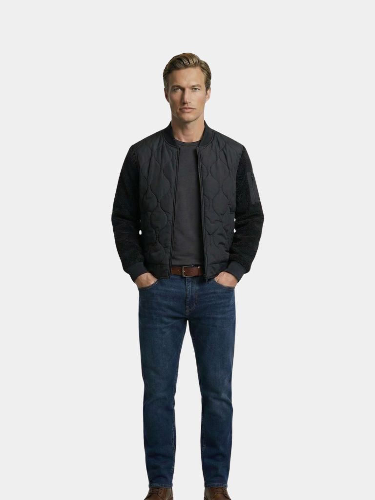Verwen uzelf met een vleugje luxe met de Sherpa Sleeves Padded Bomber Jacket van Cross & Crown. De zachte sherpa mouwen voegen een knus en stijlvol element toe aan het klassieke ontwerp van het bomberjack, terwijl de vulling zorgt voor warmte en comfort. Verhoog uw garderobe met dit prachtige stuk.